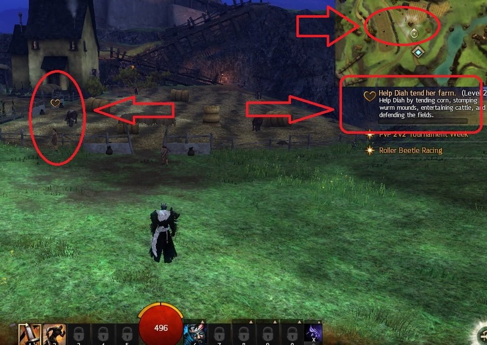 Ως τότε ο καλύτερος τρόπος να πάρουμε lvl, αλλά και να εξοικειωθούμε με το game, είναι να κάνουμε τις αποστολές που δίνουν οι “καρδιές”. Οι “καρδιές” είναι τα quests του game με την διαφορά ότι δεν χρειάζεται να μιλήσεις στον ΝPC για να ενεργοποιήσεις το quest. Απλά πλησιάζεις στο σημείο που λαμβάνει μέρος και το quest ενεργοποιείται αυτόματα. Αν απομακρυνθούμε,